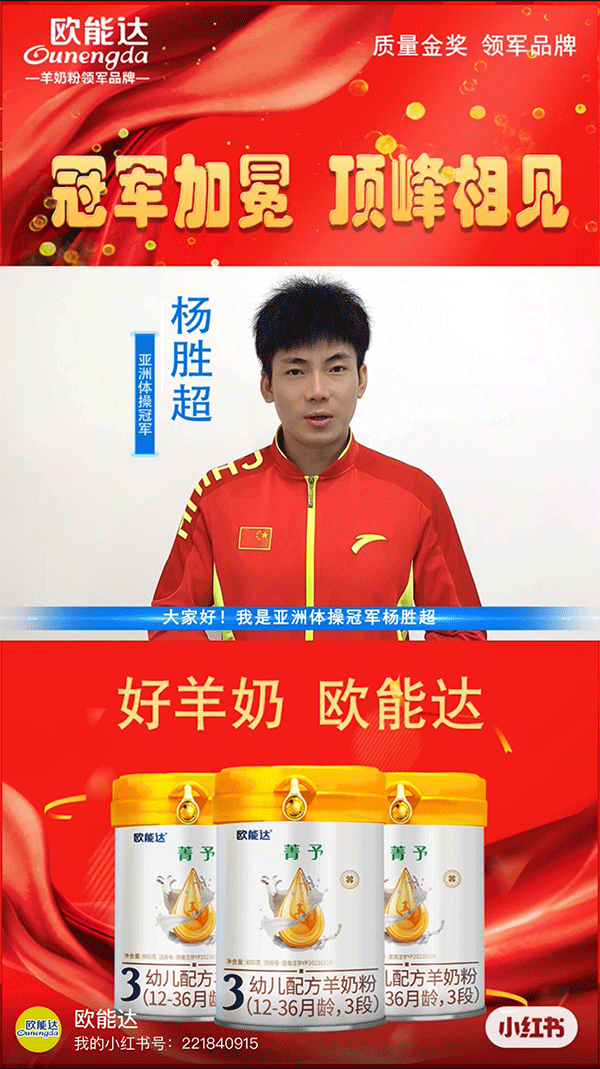 ??冠軍加冕 ??頂峰相見?? 又一位冠軍來咯! 亞洲體操冠軍楊勝超 為#歐能達 好羊奶 點贊?? ??【領軍品牌遇上冠軍】#歐能達 羊奶粉行業(yè)領軍品牌